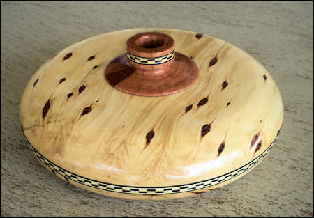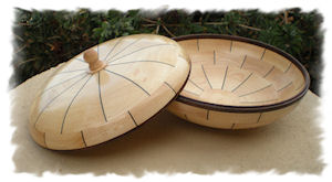 highlighted with 1/32" dyed veneer. The lids are tenoned to capture the