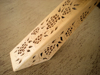 The one to the left is made of African Wenge, trimmed with Maple. The