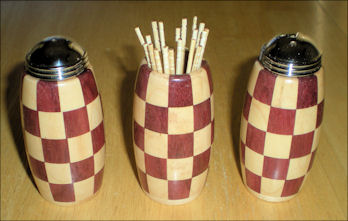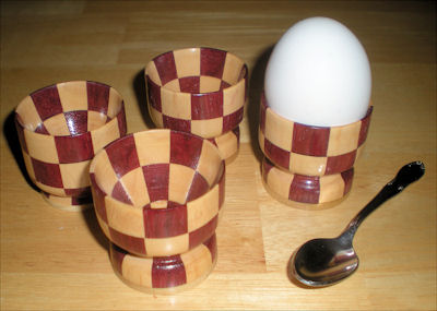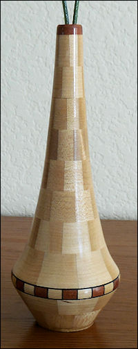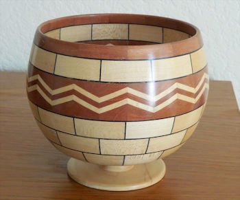 Rare woods, stands 7" high. The one shown is Latin American Purple Heart and Maple. The