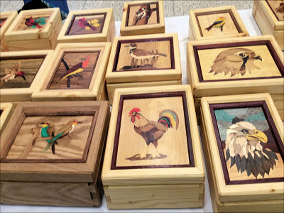 I've enclosed a few attachments showing a sample of this year's marquetry decorated boxes that I created.