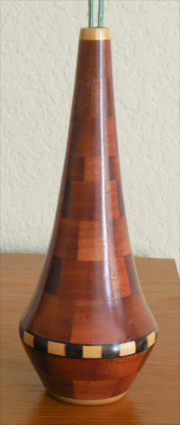 Rare woods, stands 7" high. The one shown is Latin American Purple Heart and Maple. The