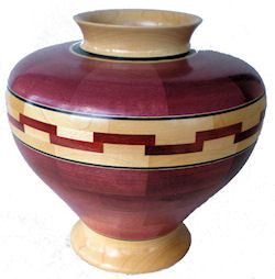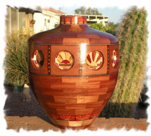 segmented urn is made from African Mahogany,